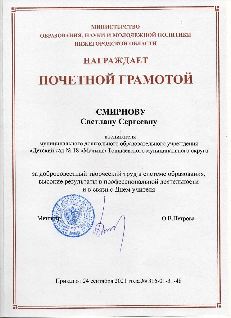 На этой странице я хочу поделиться с вами своими достижениями в области воспитания и обучения детей. Эти награды стали для меня стимулом для дальнейшего профессионального роста и развития. Я благодарю всех, кто поддерживал меня на этом пути, и надеюсь, что мои достижения помогут мне и дальше успешно работать с детьми и их родителями, способствуя их всестороннему развитию и воспитанию. |