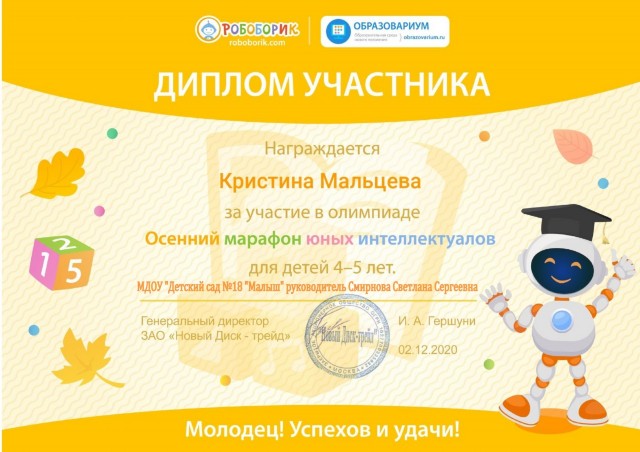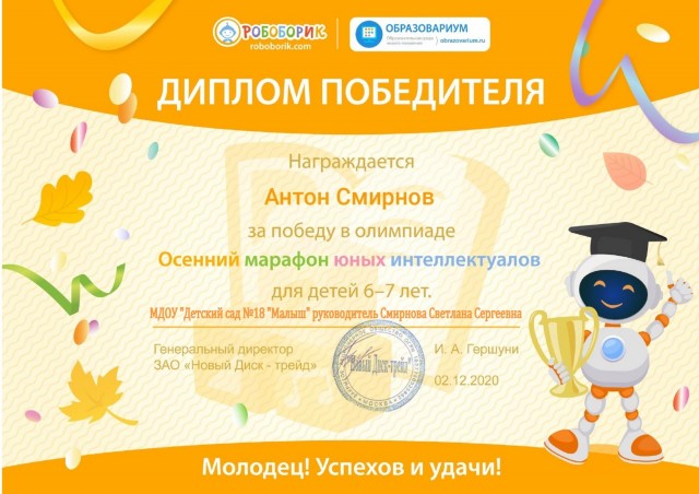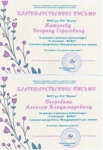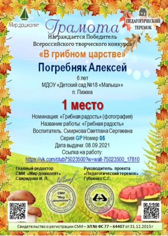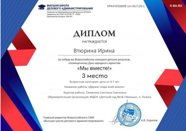 На этой странице я хочу поделиться с вами достижениями моих воспитанников, которые являются результатом нашей совместной работы по всестороннему развитию и воспитанию детей. Я горжусь каждым из них и считаю, что их успехи - это моя личная победа. Каждый из моих воспитанников получил грамоты, дипломы и сертификаты за свои достижения, которые являются для них памятными знаками признания их талантов и усилий. Я хочу поблагодарить всех родителей и детей, которые поддерживали меня в моей работе, и выразить надежду, что наша совместная работа будет и дальше способствовать всестороннему развитию и воспитанию детей. |