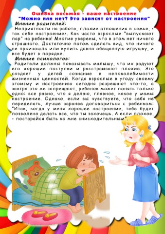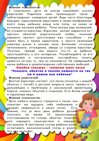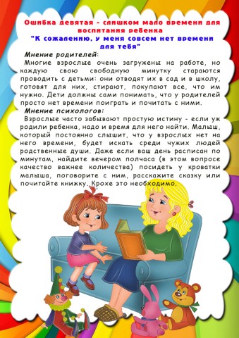 На этой странице я хочу представить вашему вниманию консультации для родителей, которые я подготовила на основе своего опыта работы в детском саду. Эти консультации предназначены для того, чтобы помочь родителям лучше понять особенности развития и воспитания детей дошкольного возраста, а также дать им практические советы и рекомендации по решению различных вопросов, связанных с воспитанием детей. В моих консультациях вы найдете информацию о том, как правильно организовать режим дня ребенка, как стимулировать его интерес к чтению и другим видам деятельности, как помочь ему развить навыки общения и сотрудничества с другими детьми, а также многое другое. Я надеюсь, что эти консультации будут полезны для родителей и помогут им стать более компетентными в вопросах воспитания и развития своих детей. Если у вас возникнут вопросы или предложения, я всегда готова оказать вам помощь и поддержку. |